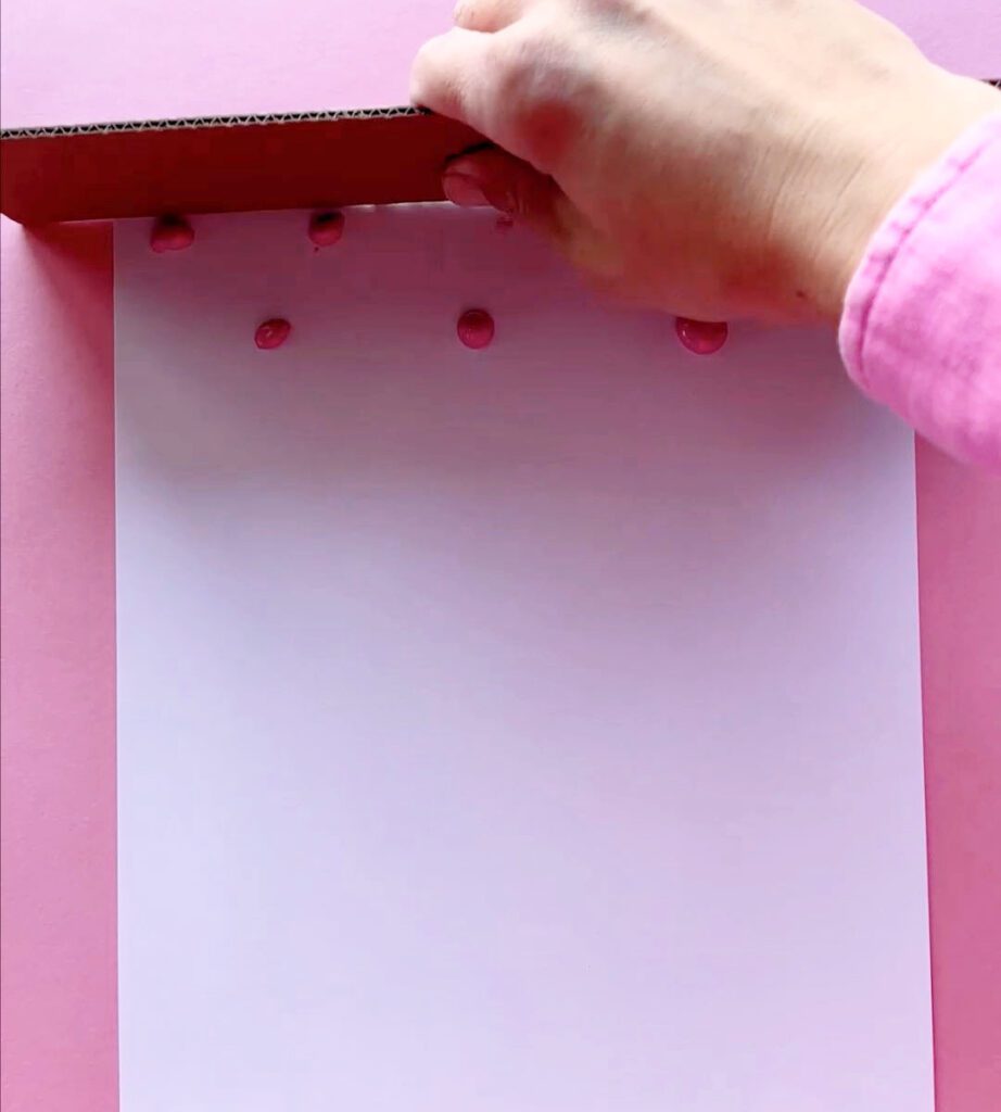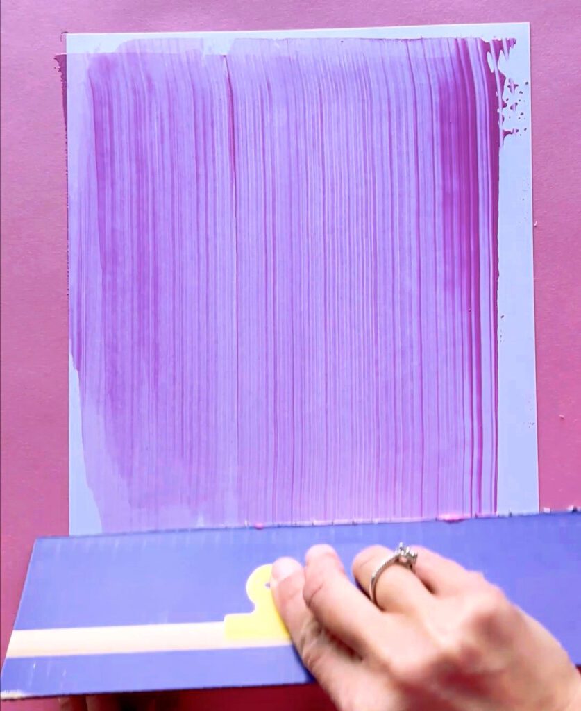 Step 3: Use a long piece of cardboard or squeegee to carefully scrape the paint across to create a half rainbow. Let it dry.