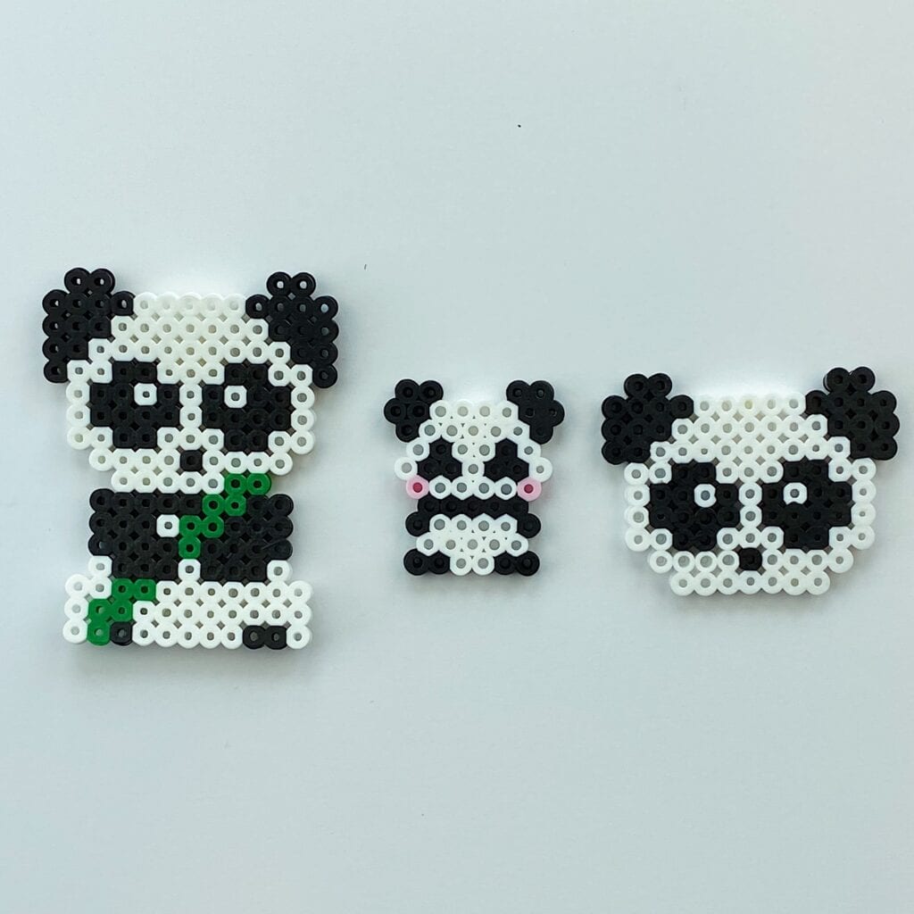 Cute pandas made of perler beads.Â
