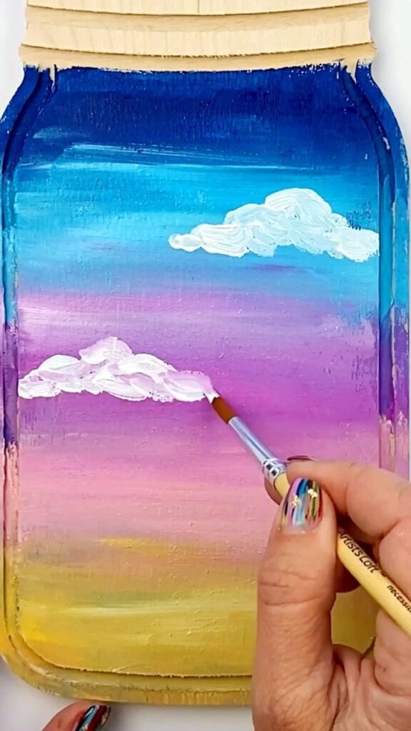 - To add the clouds use a round brush and start with just white.