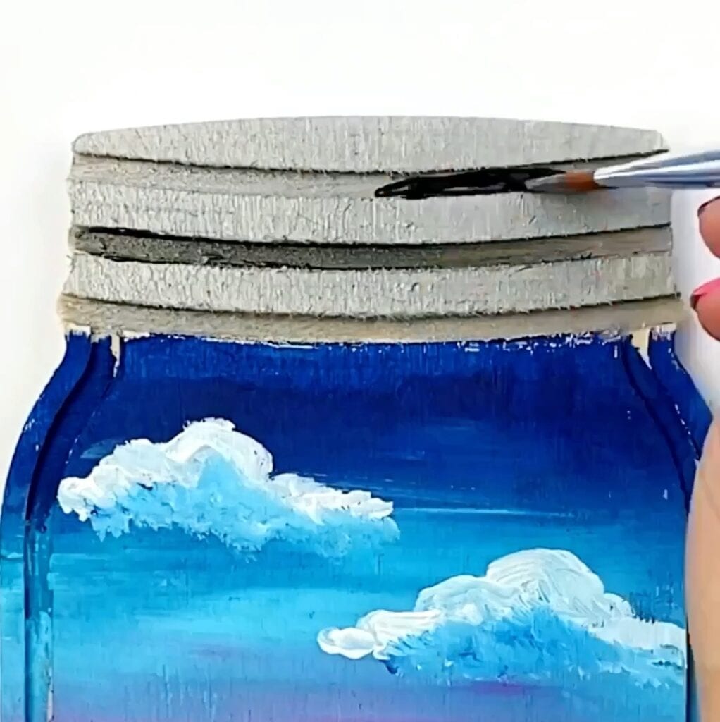 - At the top of the mason jar wood cutout paint silver for the lid and add dark gray lines. Â Â