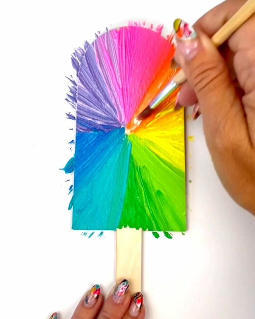 Rainbow DIY Abstract Painting with a Paint Brush
